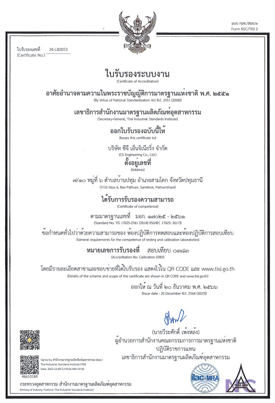 Our company has been certified with international standards for quality management systems and testing and calibration laboratories by ISO, a globally recognized organization trusted by numerous clients.